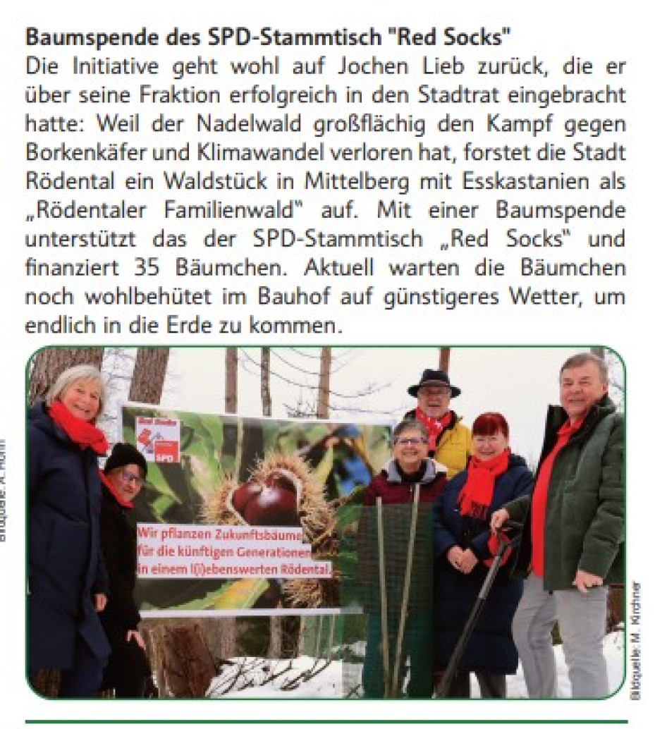 Die Stadt Rödental dankte dem Spender Red Socks mit einer Urkunde und würdigt unsere Initiative im Rödentaler Amtsblatt "Albert", Ausgabe 03/2026, wo unsere symbolische Pflanzaktion in der zurückliegenden "Eiszeit" bildlich dokumentiert ist.